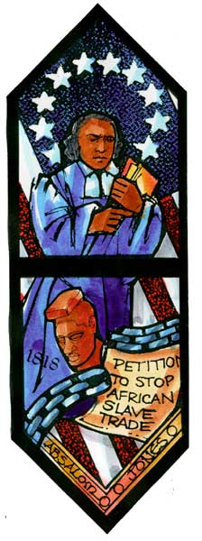Absalom Jones was born a house slave in 1746 in Delaware. He taught himself to read out of the New Testament, among other books. When sixteen, he was sold to a store owner in Philadelphia. There he attended a night school for Blacks, operated by Quakers. At twenty, he married another slave, and purchased her freedom with his earnings.